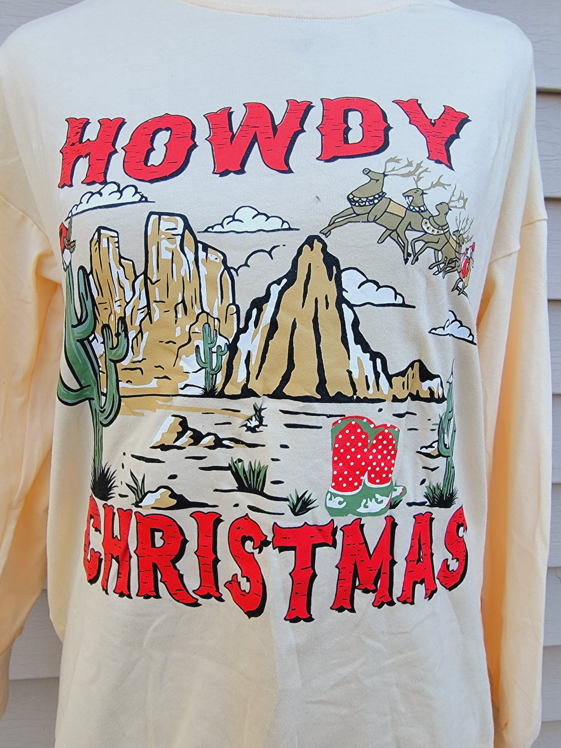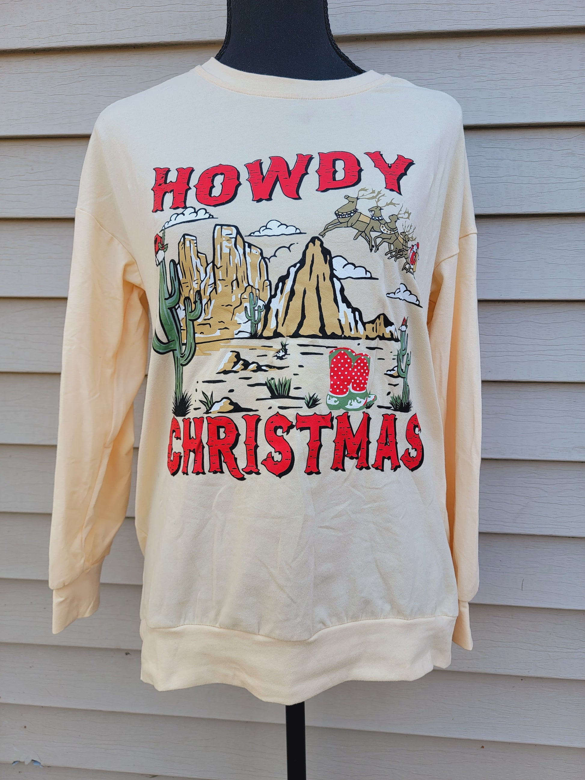 This classic ivory "Howdy Christmas" women's sweatshirt is made of 97% cotton and 3% spandex, making it soft and comfortable, with just enough stretch for extra mobility. Perfect for staying cozy on chilly winter days.
