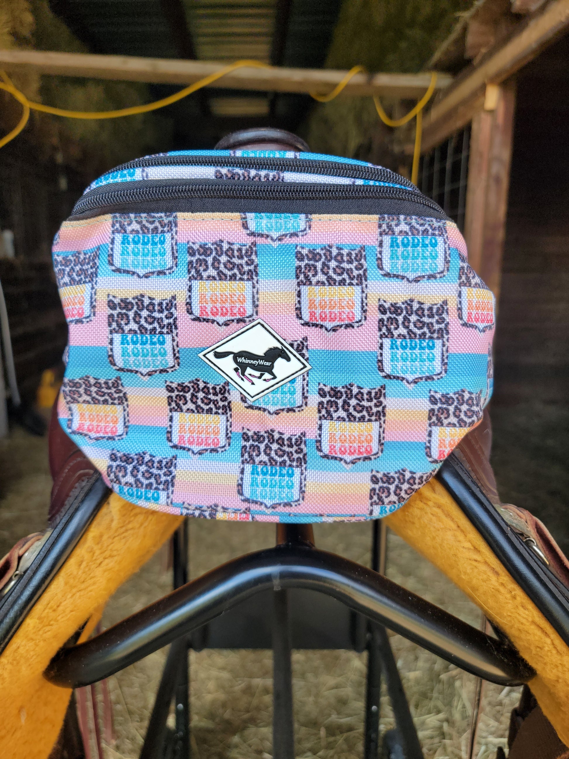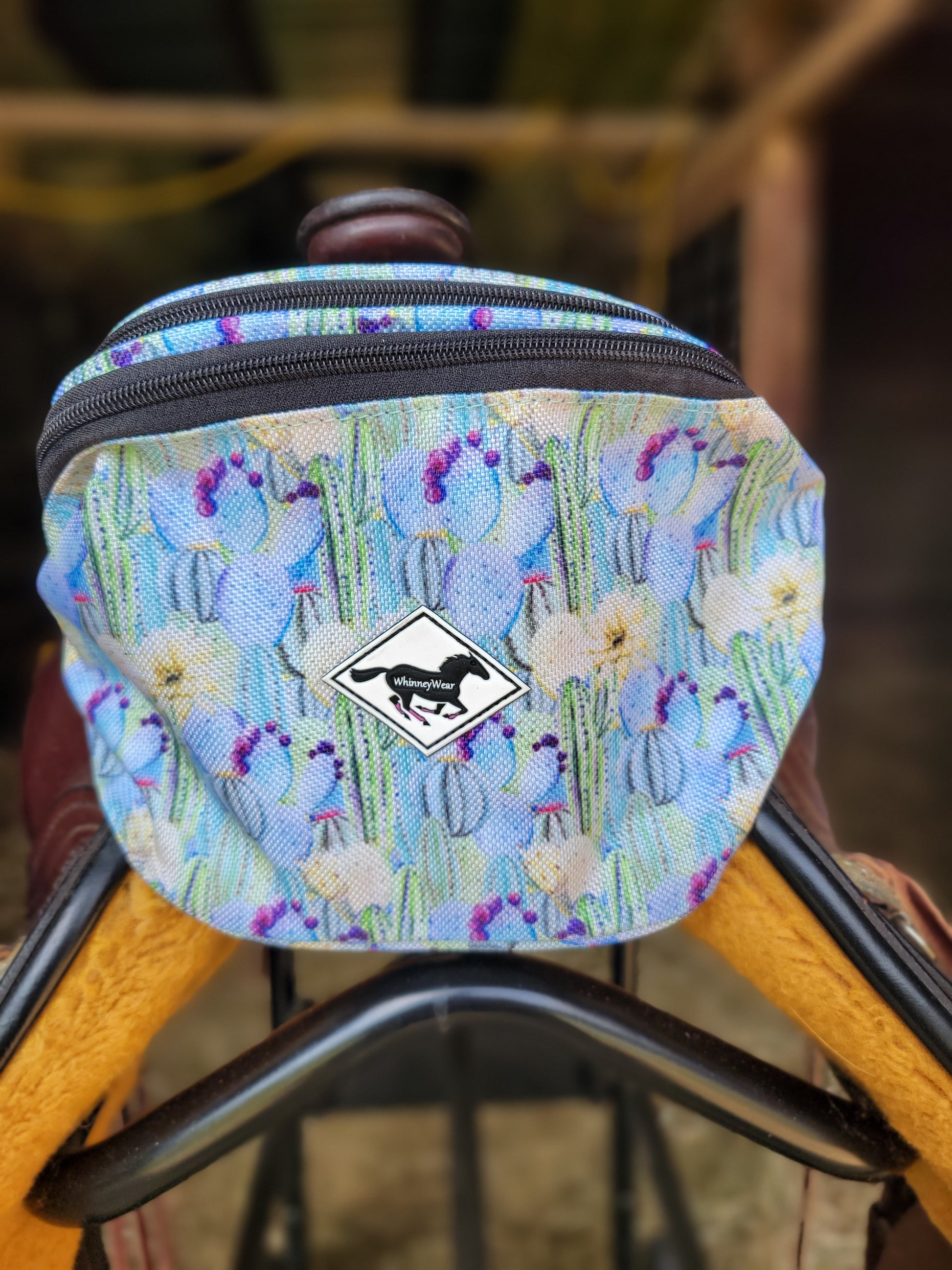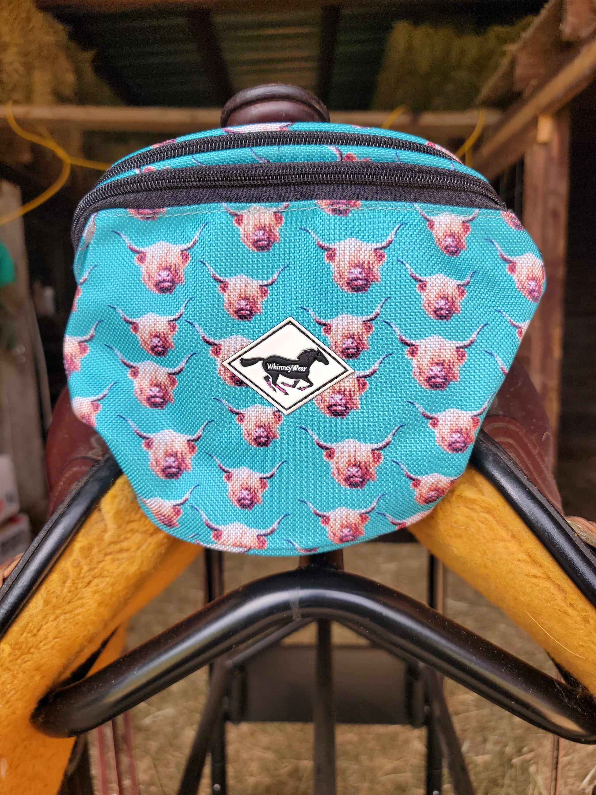 These are specialty made pommel packs by WhinneyWear. Comes with two heavy duty adjustable buckles. See through top pouch allows your phone to ride comfortably with easy access to see notifications.