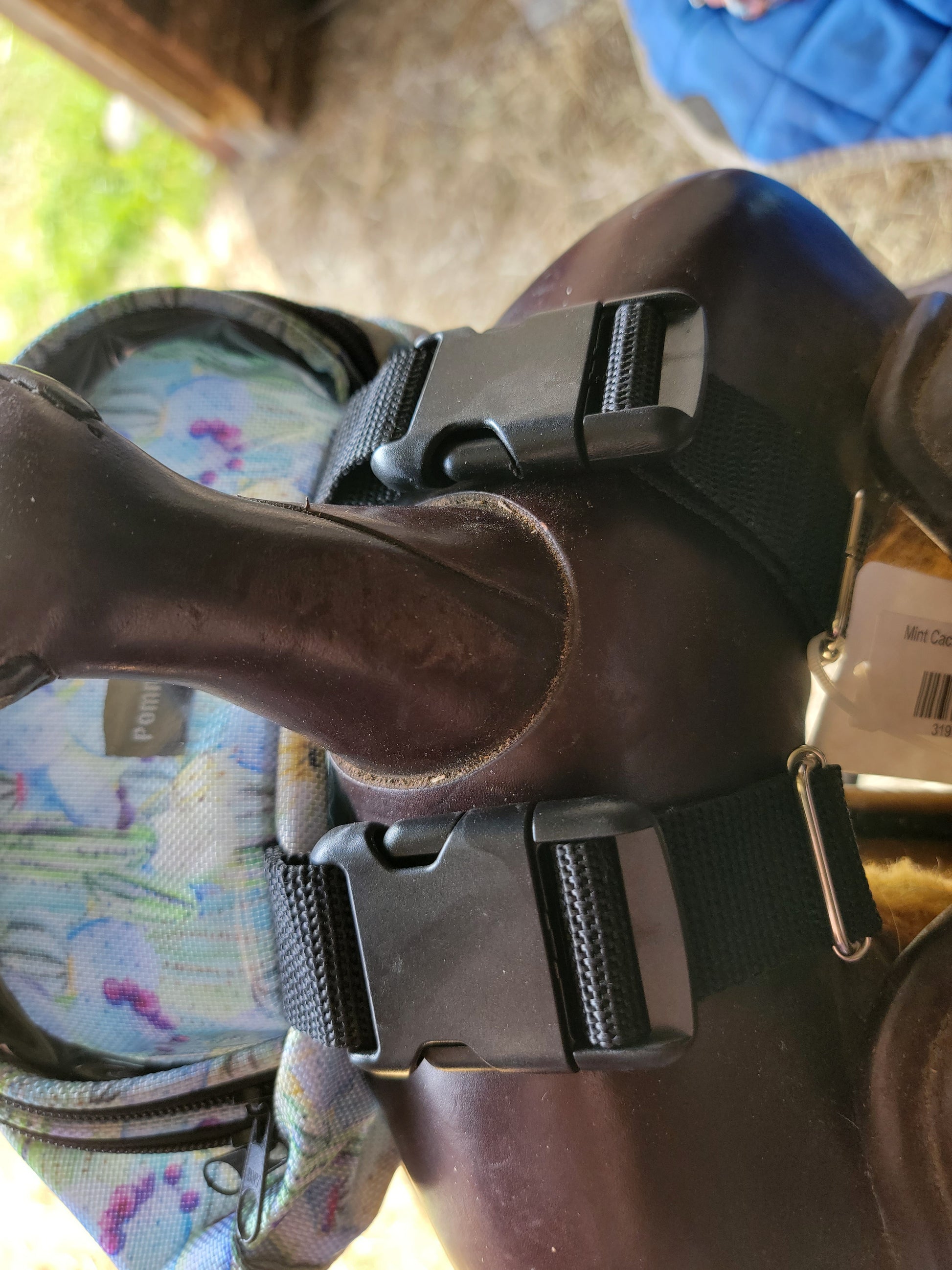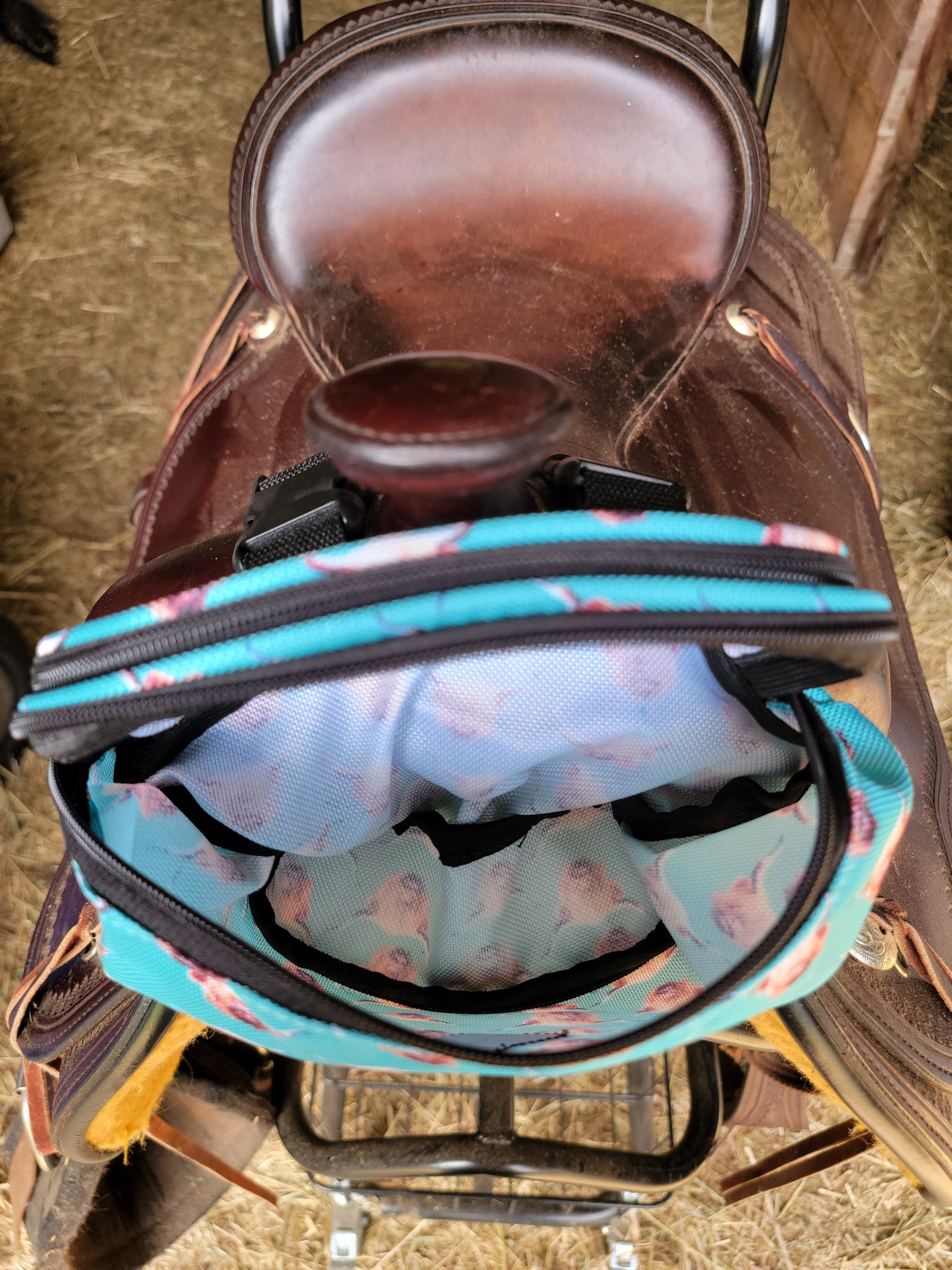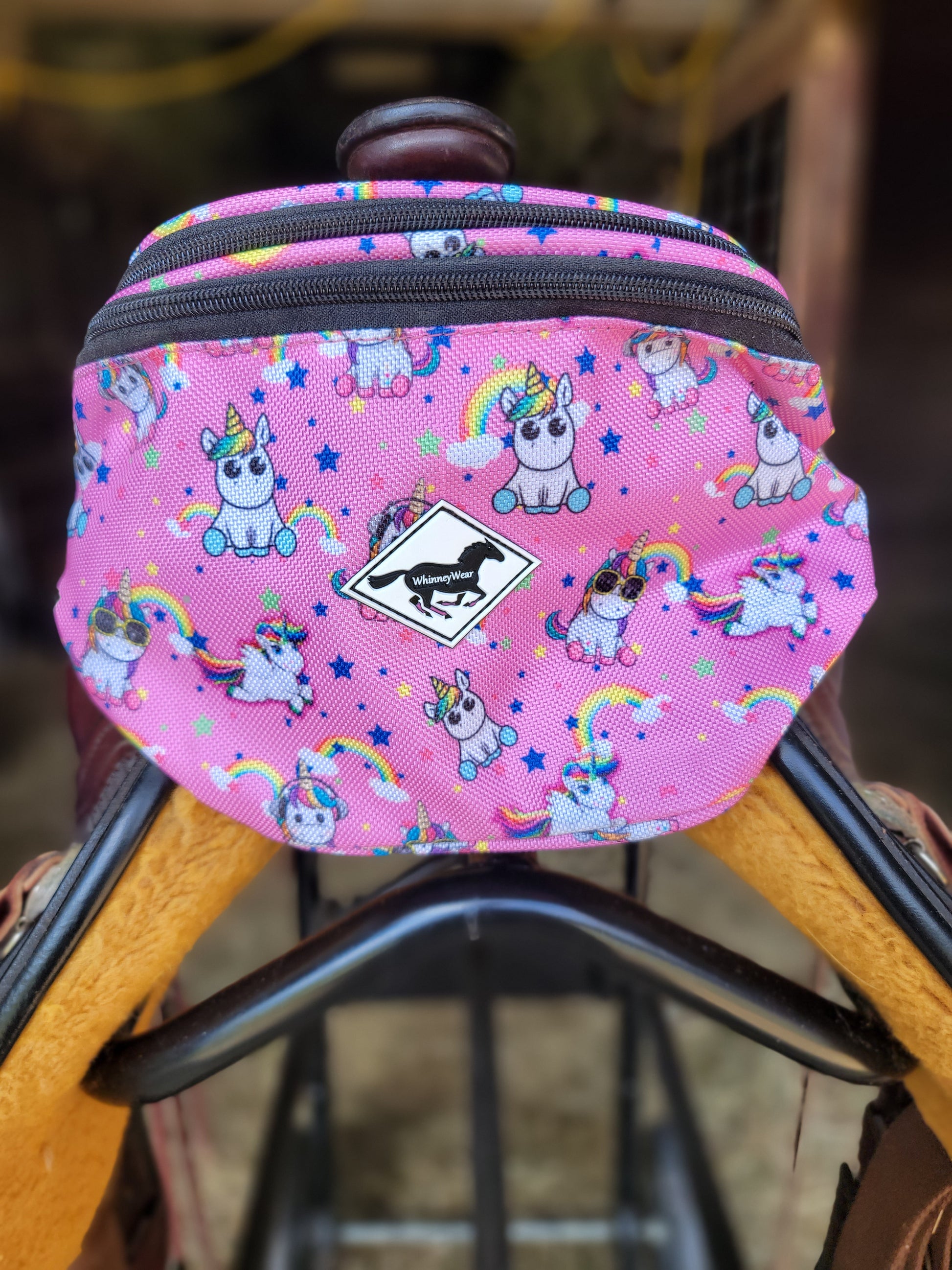 These are specialty made pommel packs by WhinneyWear. Comes with two heavy duty adjustable buckles. See through top pouch allows your phone to ride comfortably with easy access to see notifications.